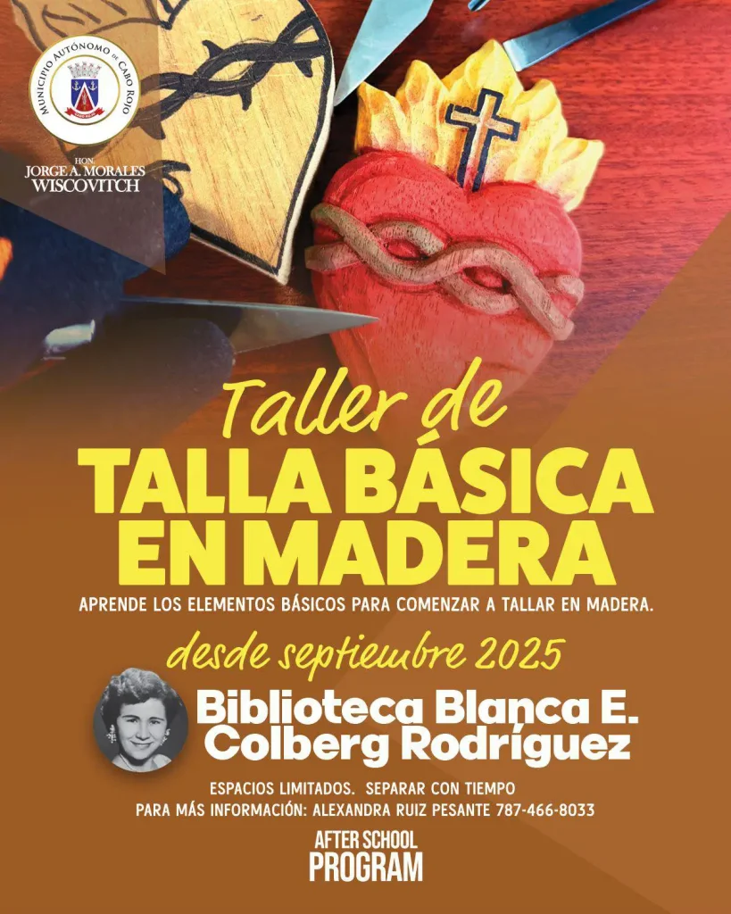 Llega a la Biblioteca Blanca E. Colberg Rodríguez el Taller de Talla Básica en Madera, donde aprenderás desde cero las técnicas y elementos esenciales para comenzar a tallar.